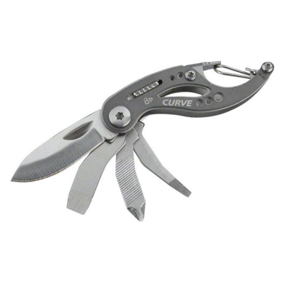 Além de ter cinco componentes de ferramenta, a Curve da Gerber se prende ao seu chaveiro e tem um abre garrafas embutido. Este modelo Gerber tem uma lâmina de faca de gume fino, chave de fenda de cabeça chata, chave de fenda Phillips, furador e uma lima. A Curve da Gerber se prende ao porta chaves com um mosquetão.