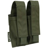 Suporte plástico para carregador de pistola dupla 9mm, fabricado pela empresa Euro Security Products. O suporte universal com travamento automático é projetado para transportar uma gama mais ampla de carregadores dupla Luger de 9 mm para as armas de serviço usadas com mais frequência em todo o mundo – como Glock, SIG Sauer P226/P229, SW MP9, Beretta M9, Taurus 92/99, CZ 75 Compact, Grand Power K100.. O design sofisticado da mola de fixação será apreciado não apenas pelos militares, mas também pelos atiradores de tiro de ação. Fixado com UBC-04 – este tipo de suporte permite a fixação segura e firme dos suportes ESP em uma cinta MOLLE MIL STD com possibilidade de rotação de 360° e fixação em 16 posições angulares. Os suportes ESP com suporte UBC-04 podem ser fixados arbitrariamente a qualquer colete tático/balístico atual ou mochilas táticas apenas inserindo a haste de travamento de plástico no corpo do UBC-04 através de MOLLE.