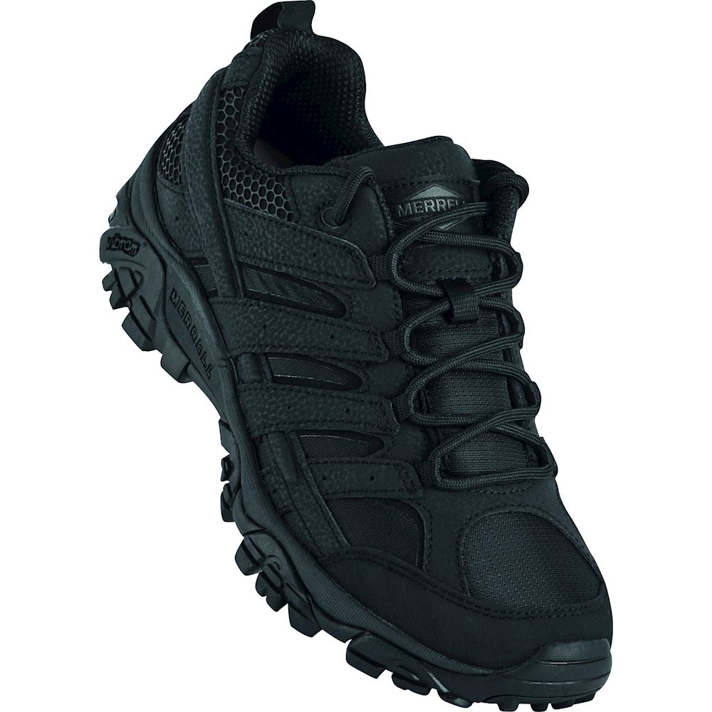 Com couro durável e parte superior ripstop e sola Vibram® TC5+ para tração durável, o O sapato tático Moab 2 está pronto para servir. Hardware não metálico. A almofada de ar Merrell no calcanhar absorve choques e adiciona estabilidade. Altura do salto: 5,8 cm. Forro de malha respirável. Palmilha com contorno em EVA misturada KINETIC FIT™ com arco zonal adicional e suporte de calcanhar. A língua do fole impede a entrada de detritos. Biqueira de borracha protetora e resistente à abrasão. Haste em arco de nylon moldado para suporte e flexibilidade no meio do pé. Gola de malha emborrachada para suporte e maior durabilidade. Sola Vibram® TC5 + com profundidade de 5 mm. Couro revestido de PU e parte superior em tecido ripstop. Braços externos de estabilidade lateral para segurança. Peso: 1,22kg