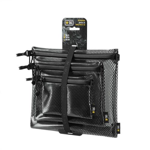 A M-Tac lançou o ZIP POCKET ORGANIZER SET ELITE, projetado para armazenar e transportar itens essenciais de maneira conveniente. O conjunto inclui 3 organizadores de tamanhos diferentes: P (10 x 15 cm) M (15 x 25 cm) G (25 x 35 cm) São confecionados em malha laminada (PVC), conhecida por sua durabilidade, propriedades impermeáveis e resistência à deformação. Os organizadores fecham com fechos YKK AquaGuard, que combinados com o material principal, protegem o conteúdo da água e das intempéries. No lado esquerdo de cada organizador, há um pequeno mosquetão da Woojin, um fabricante líder de hardware coreano. No lado direito, há uma alça especial para facilitar o manuseamento na hora de fechar .